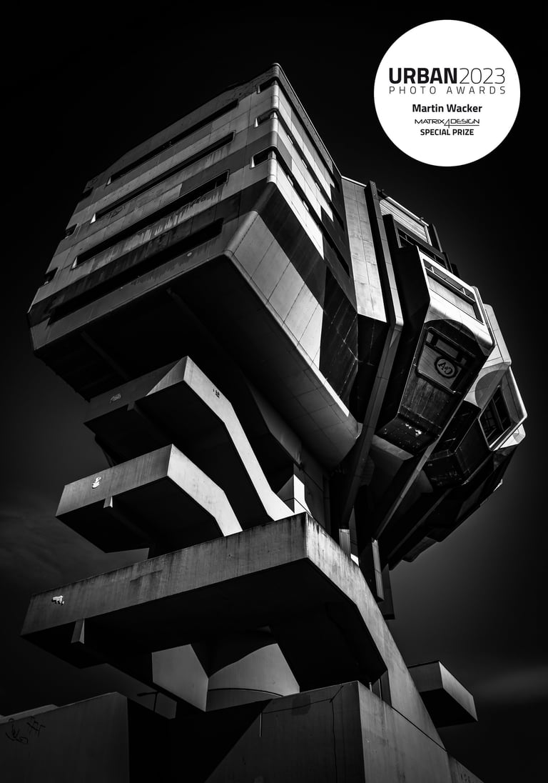 With its original name meaning “beer brush” and celebrating its hybrid nature between architecture and pop art in the heart of Berlin, Bierpinsel is the building portrayed in the winning photograph of the 2023 Icons of Architecture Award, taken by Martin Wacker and selected by Matrix4Design from more than 200 photographs entered in the competition organized in collaboration with URBAN Photo Awards.